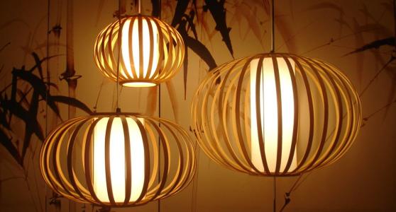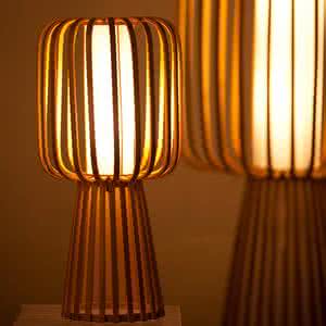 灯罩采用了古法制作的手工竹叶纸,灯座部分则使用了黑竹(紫竹)。点亮后呈现出朦胧温和的光照氛围,闲适,淡雅。该作品获得 2007 年广州国际设计周红棉奖。