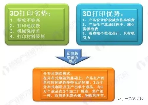 3D打印技术虽然也许会重振部分发达国家制造业竞争力,但是短期内还难以颠覆整个传统制造业模式。理由有三:一是3D打印只是新的精密技术与信息化技术的融合,相比于机器化大生产,不是替代关系,而是平行和互补关系;二是3D打印原材料种类有限,决定了绝大多数产品打印不出来;三是个性化打印成本极高,很难实现传统制造方式的大批量、低成本制造。