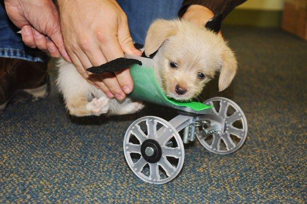 当Tumbles到达收容所时,他的体重只有1.5磅。他喝了一周的牛奶。福斯特在Facebook上发布了一幅Tumbles的照片。一对夫妇看到了这张照片,并联系了收容所,想要为他创建一个定制的轮椅。 他们用3D打印机制造了轮椅。 “(这对夫妇)想出了一个设计,并联系了俄亥俄大学创新中心,以帮助他们用他们的3D打印机制作它,”马克思说。花了14个小时才打印出来。一旦完成了,他们就装上了轮椅。它现在还不能走路。“这将是一个过程,”马克思说。